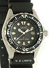 Citizen EP0220-11H Professional Diver wrist watch. Small 26mm size case, CITIZEN Rechargeable by light Eco-Drive Quartz movement with date calendar. Sandblasted finish solid 316L Stainless steel case with uni-directional 0-60 bezel, screw-down crown, black color dial with luminous hands and markers. 200m water resistance. Rubber watch band with No Decompression (N.D.) Limits table printed on "6" part