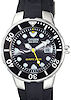 Citizen Diver watch EP6010-03E powered by Citizen Eco-drive movement. Small 32mm steel case, black 0-60 bezel, screw-down crown and case back, black dial with luminous markers. Black rubber band. Water resistant to 300 meters