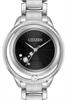 Citizen L collection Sunrise Solitare, model EW5520-50E. Stainless steel case & bracelet. Black diamond studded dial. Diamonds embedded directly into the scratch resistant sapphire crystal. Powered by Eco-Drive solar technology.
