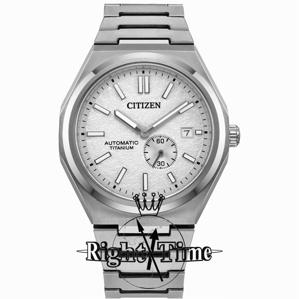 Citizen Zenshin Mechanical watch model NJ0180-80A. Citizen automatic caliber 8213 movement with date and small second platform functions. Titanium case with bracelet. White textured dial with luminous hands and markers. Water resistant to 100 meters. Sapphire crystal.