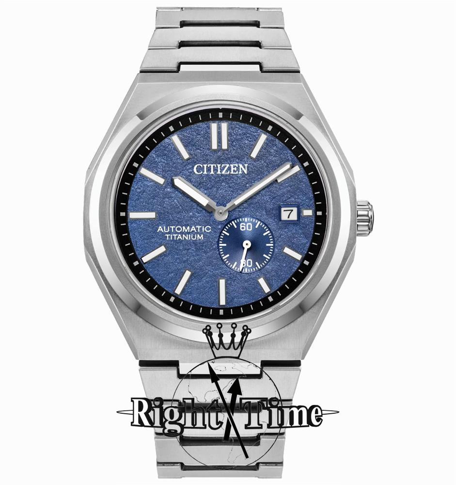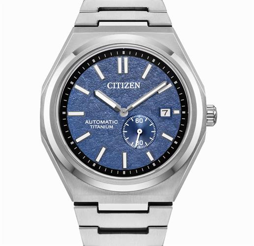 Citizen Zenshin Mechanical watch model NJ0180-80L. Citizen automatic caliber 8213 movement with date and small second platform functions. Titanium case with bracelet. Blue textured dial with luminous hands and markers. Water resistant to 100 meters. Sapphire crystal.