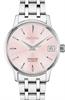 Pink color. Applied polished steel tone markers. Luminous hour markers/dots.