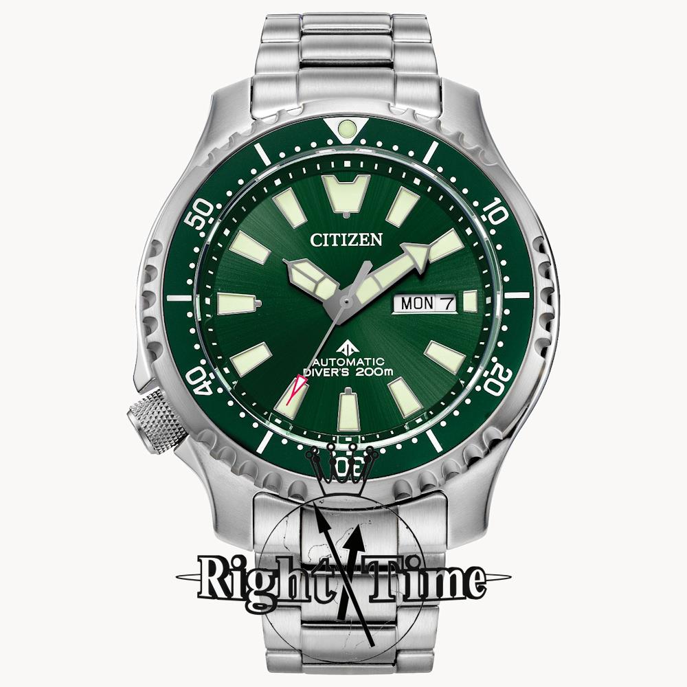 Citizen Promaster Dive watch NY0151-59X powered by Citizen automatic movement 8204. Stainless steel case and bracelet. Green dial with day/date calendar and luminous markers. Water resistant to 200 meters