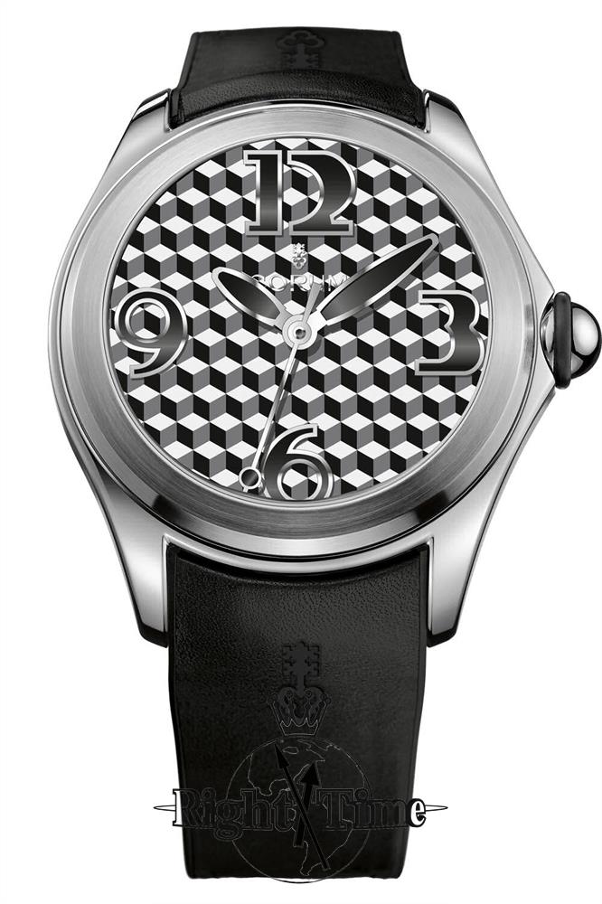 Corum Bubble Black an White Cubism Optical Art. Watch model L082/03002 powered by Swiss automatic movement. Stainless steel case. Sapphire crystal. "3-D Cubism" dial. Black rubber strap.