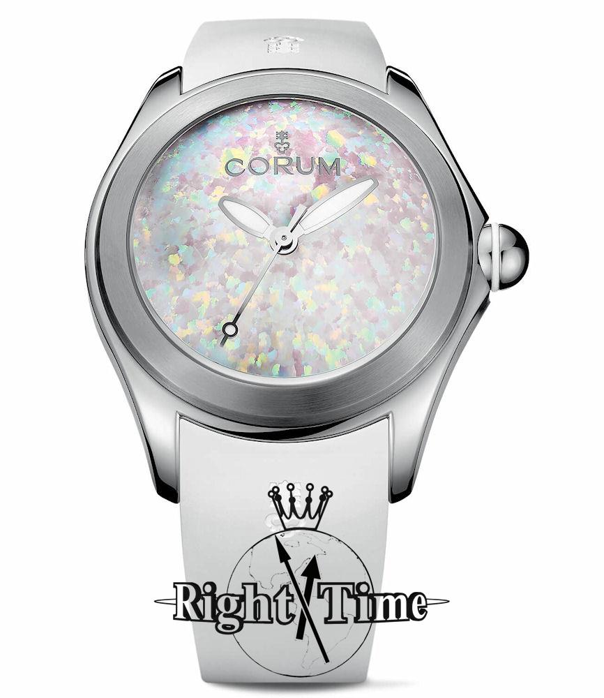 Corum Bubble 42 Watch model L082/03621 powered by Swiss automatic movement. Stainless steel case. Sapphire crystal. Opal leaf-type dial with super luminova on hands. White rubber strap. Limited Edition of 88 pieces