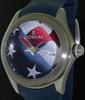 Corum Bubble large 52mm titanium case 88 piece Limited Edition "Stars N`Stripes" watch model L403-03247 powered by Swiss made Eterna manufactured automatic caliber 3902A. Highly domed sapphire crystal. US Flag decorated dial. Blue rubber strap