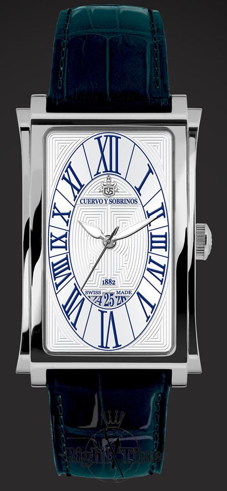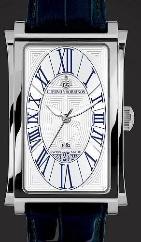 Cuervo Y Sobrinos Prominente Solo tiempo Steel Romain Ovale Argente Model 1012.1AO Classic timeless elegant automatic watch in stainless steel curved case to perfectly fits your wrist. Silver color dial with large Roman numerals. Comes in unique cigar humidor box