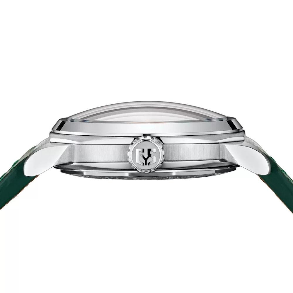 Super-LumiNova radiation-free luminous filled. Steel hour and second hands. Yellow minute hand.