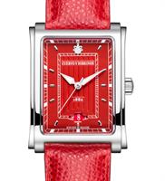 Cuervo Y Sobrinos Prominente Senora Caramelo Model 1015.1BX. Classic timeless elegant automatic watch in stainless steel curved case to perfectly fits your wrist. Red color dial. Red Louisiana alligator band. Comes with a complimentary Cuervo y Sobrinos electronic watch winder