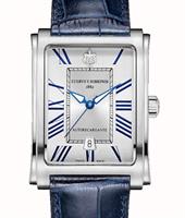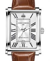 Cuervo Y Sobrinos Prominente Clasico Model 1015.1RA. Classic timeless elegant automatic watch in stainless steel curved case to perfectly fits your wrist. Silver color dial with Roman numerals. Brown Louisiana alligator band
