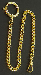 12" stainless steel gold plated 5.00mm FLAT CURB polished pocket watch chain with large loop