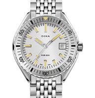 Doxa Sub 200 Searambler model 796.10.021.10. Water resistant to 200 meters. Watch is powered by Swiss mechanical automatic, self-winding movement decorated by Doxa. Silver color dial with steel hands. Comes on a bracelet.