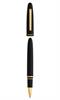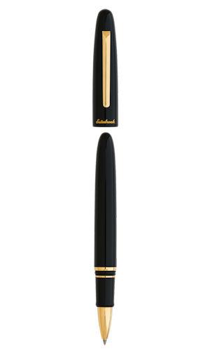 Esterbrook Estie Ebony Black roller ball pen with gold trim. Size 5.9" closed, 5" open, 6.7" posted.