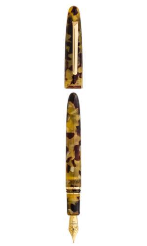 Esterbrook Estie Tortoise fountain point pen with gold trim. Size 5.9" closed, 5" open, 6.7" posted.