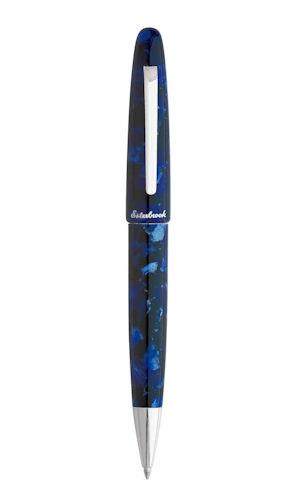 Esterbrook Estie Cobalt Blue ballpoint pen with palladium trim. Size 5.9" closed, 5" open, 6.7" posted.