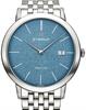 Eterna Eternity watch model 2710.41.80.1736. Powered by ETA quartz movement. Stainless steel case and bracelet. Blue textured dial with date calendar.