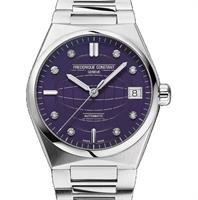 Frederique Constant Highlife COSC Collection. Model FC-303PD2NH6B. Swiss automatic certified COSC movement. Stainless steel case. Purple color dial with an embossed globe pattern, date calendar, luminous hands and markers. Steel bracelet
