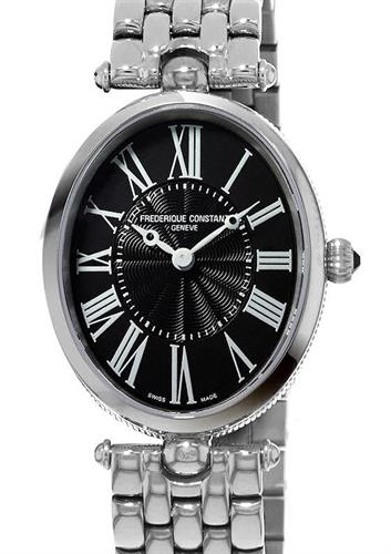 Frederique Constant Art Deco Collection. Model FC-200MPB2V6B. Oval stainless steel case with bracelet. Swiss quartz movement. Sapphire crystal. Textured black color dial with Roman numerals.