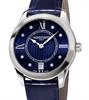 Frederique Constant Ladies Collection. Model FC-220MND3B6. Swiss quartz movement. Stainless steel round case. Blue color textured dial with diamond markers. Blue leather strap.