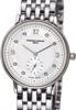 Frederique Constant Slim Line Collection. Model FC-235MPWD1S6B. Small 28.5mm round stainless steel case with bracelet. Swiss quartz movement. Sapphire crystal. Silver color guilloche textured dial with small seconds sub-dial at 6 o`clock position.