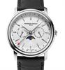 Frederique Constant Classic Collection. Model FC-270SW4P26. Swiss quartz movement. Stainless steel case. White color dial with index markers. Day and Date sub-dial indicators, Week number pointer hand, and Moon-phase. Comes on black leather strap.