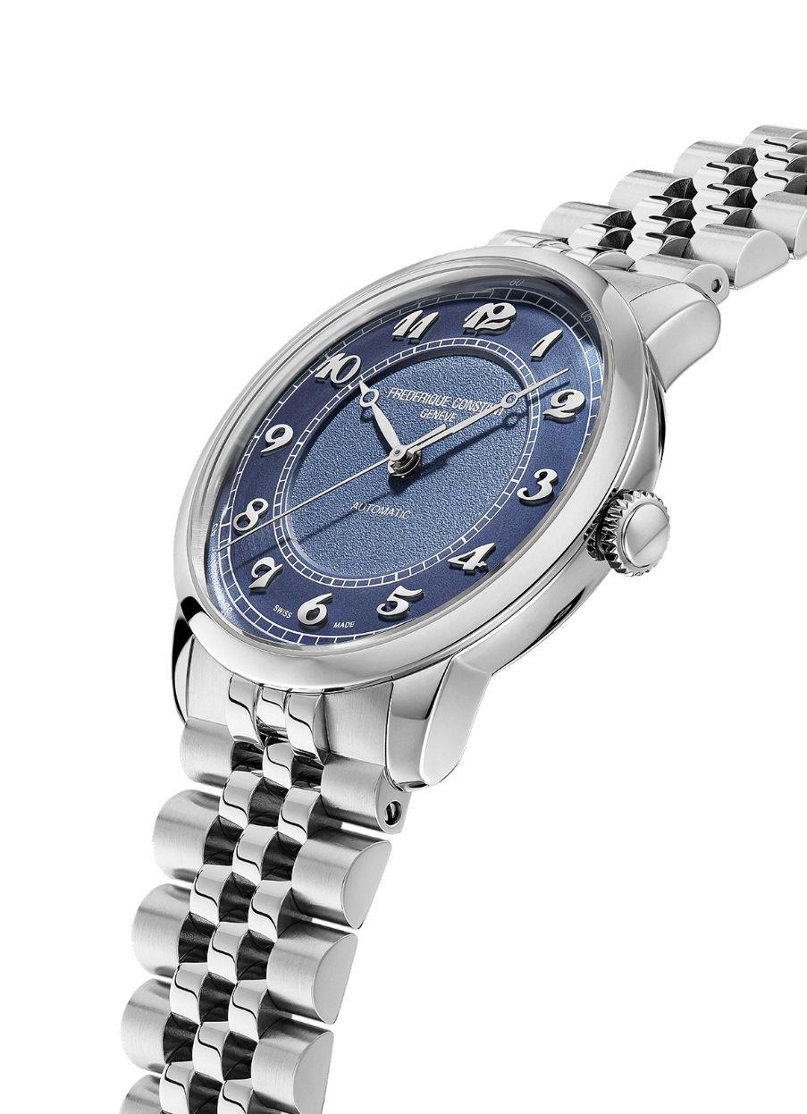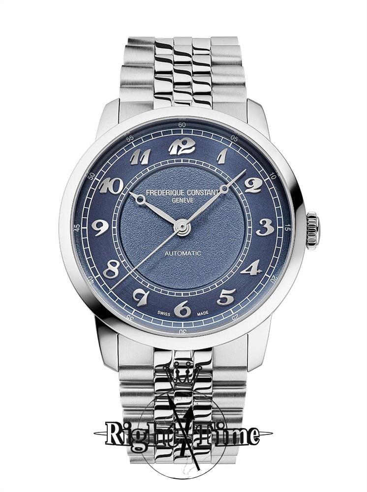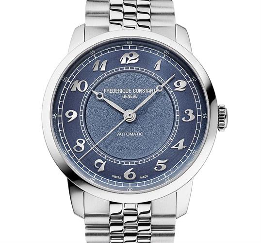 Frederique Constant Classic Premier Collection. Model FC-301BL3B6B. Blue dial with Arabic numerals. Steel case with observation back. Come on a bracelet