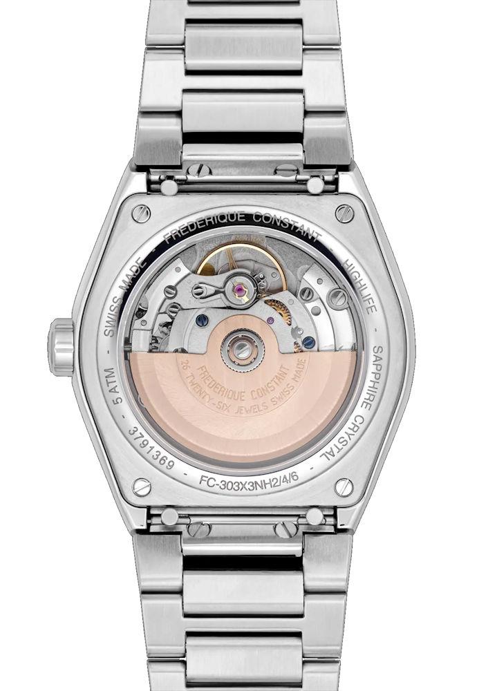Swiss made Mechanical Automatic (Powered by wrist motion). 25 jewels. Frederique Constant Cal. FC-303.