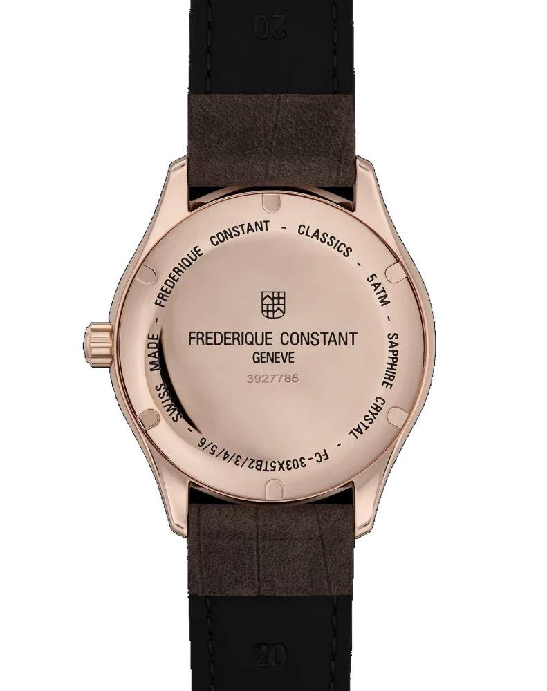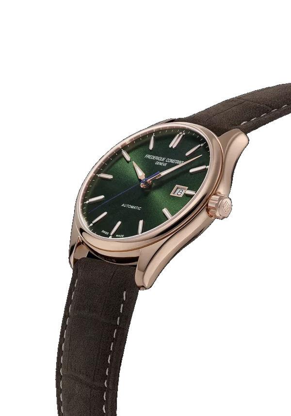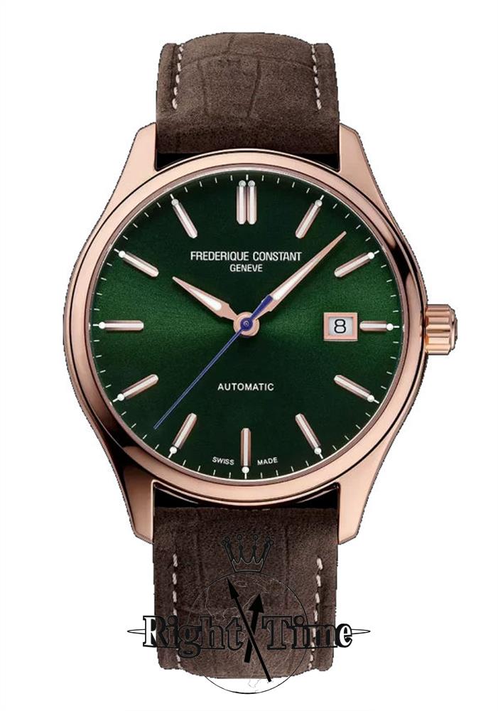 Frederique Constant Classic Index Collection. Model FC-303GR5B4. Swiss automatic movement. Stainless steel rose gold plated case with brown leather strap. Dark green color dial with date calendar.
