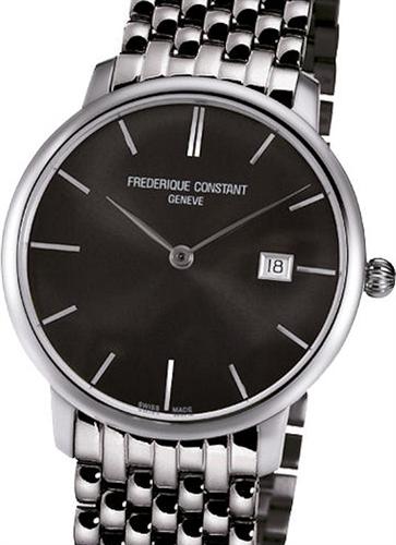 Frederique Constant Slim Line Collection. Model FC-306G4S6B. Solid stainless steel case and bracelet. Swiss automatic movement. Sapphire crystal. Dark grey dial with date calendar.