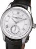 Frederique Constant Maxime Manufacture Collection. Model FC-700MS5M6. Swiss automatic movement with date pointer hand. Steel case. Silver textured dial with Roman numerals. Black leather strap.