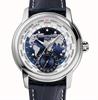 Frederique Constant Highlife Manufacture Collection. World time model FC-718NWWM4H6. Swiss automatic in-house FC-718 movement with perlage and circular Cotes de Geneve decoration. Blue and grey dial with date pointer hand and globe decoration. Polished stainless steel case with navy blue leather strap. Limited to 1888 pieces