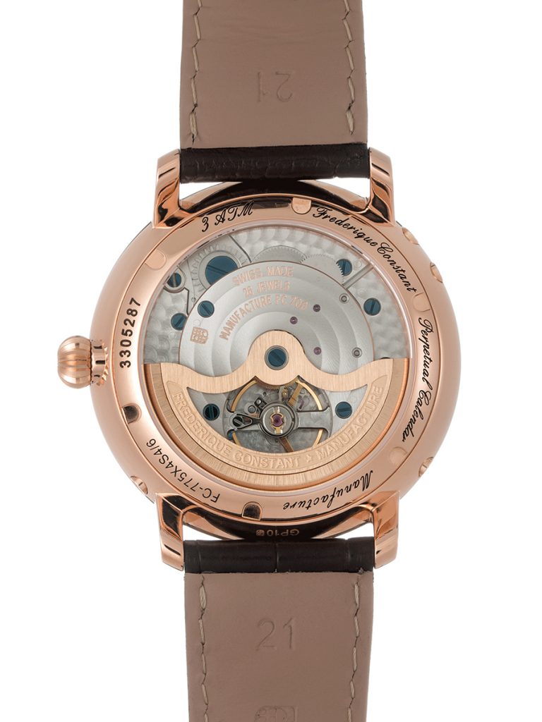 Swiss made Mechanical Automatic (Powered by wrist motion). 26 jewels. Frederique Constant Cal. FC-755.