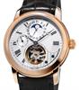Frederique Constant Heart Beat Manufacture Collection. Model FC-945MC4H9. Limited Edition of 888 pieces. Swiss automatic movement with second time zone indicator. 18kt solid rose gold round case. Silver color textured dial with "Heart Beat" at 6 o`clock, moon-face calendar, 24-hours hand, and date pointer hand-indicators. Brown leather band.