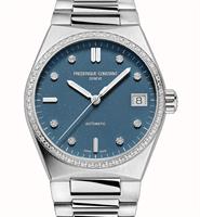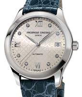 Frederique Constant Ladies Automatic. Model FC-303LGD3B6. Swiss automatic movement. Stainless steel round case. Silver color textured dial with diamond markers. Blue alligator strap