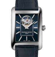 Frederique Constant Classic Heart Beat Automatic watch model FC-311N4C6. Swiss automatic movement. Stainless steel tank style case. Blue color textured dial with "Heart Beat" at 12 o`clock. Blue leather band.