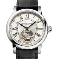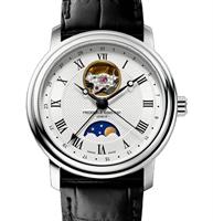 Frederique Constant Classic Heart Beat Moonphase Date watch model FC-335MC4P6. Swiss automatic movement. Stainless steel round case. Silver color textured dial with "Heart Beat" at 12 o`clock, date pointer hand, and moon phase calendar at 6 o`clock. Black leather band.