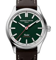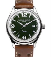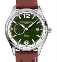 Frederique Constant Vintage Rally Healey Automatic watch. Model FC-303HGRS5B6. Limited Edition. Swiss automatic movement with date. Stainless steel case. Green dial with white ring and luminous hands and indexes. Brown leather band.