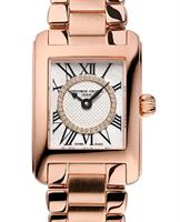 Frederique Constant Carree Collection. Model FC-200MPDC14B. Swiss quartz movement. Rose gold plated stainless steel tank style case with bracelet. Silver color dial with Roman numerals and diamond ring.