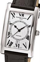 Frederique Constant Carree Collection. Model FC-303MS4C26. Swiss automatic movement. Stainless steel tank style case. Silver color dial with Roman numerals. Brown leather band.