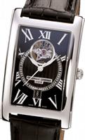 Frederique Constant Carree Collection. Model FC-315BS4C26. Swiss automatic movement. Stainless steel tank style case. Black color dial with signature Heart Beat aperture at 12 o`clock. Black leather band.