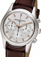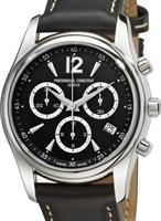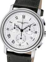 Frederique Constant Classic Collection. Model FC-292MC4P6. Swiss quartz chronograph movement. Stainless steel case. Silver color dial with Roman numerals. Black leather band.