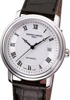Frederique Constant Classic Index Collection. Model FC-303MS5B6. Swiss automatic movement. Stainless steel case. Silver color dial with Roman numerals and date calendar. Black leather band.