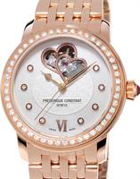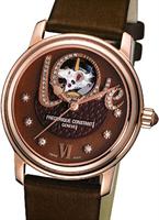 Frederique Constant Love Heart Beat watch. Model FC-310CLHB2P4. Swiss automatic movement. Stainless steel rose gold plated round case. Chocolate color textured and Mother-of-Pearl dial with diamonds and "Heart Beat" at 12 o`clock. Brown leather band.