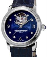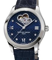 Frederique Constant Heart Beat watch. FC-310HBAND2P6. Swiss automatic movement. Stainless steel round case. Navy blue color textured dial with diamonds and "Heart Beat" at 12 o`clock. Blue leather band.