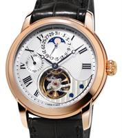 Frederique Constant Tourbillon Manufacture. Model FC-980G3H9. Limited Edition of 150 pieces. Powered by automatic FC-980 in-house movement with heartbeat and tourbillon. Grey sunray dial. 18k rose gold case with brown alligator strap.