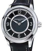 Frederique Constant Classic watch with a modern twist. Model FC-225ST5B6. Round stainless steel case on black leather strap. Swiss quartz movement. Sapphire crystal. Silver color textured dial with day/date calendar