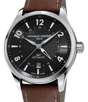 Frederique Constant Runabout GMT Automatic 43mm watch. Limited Edition of 2888 pieces. Model FC-350RMG5B6. Tribute to the legendary Runabout gentlemen`s sports boats of the roaring 20s, which can be still seen today gracing the waters of lakes such as Lake Geneva, Lake Como and Lake Tahoe. Swiss automatic movement with in-house GMT module. Stainless steel round case. Black color textured dial with date calendar. Brown leather band.