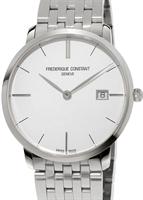 Frederique Constant Slim Line Collection. Model FC-220S5S6B. Small 38.5mm round stainless steel case with bracelet. Swiss quartz movement. Sapphire crystal. Silver color dial with date.