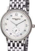 Frederique Constant Ladies Collection. Model FC-220MSD3B6B. Swiss quartz movement. Stainless steel round case. White color textured dial with diamond markers. Steel bracelet.