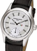 Frederique Constant Vintage Rally Collection. La Carrera Panamericana automatic watch. Model FC-435S6B6. Swiss automatic movement. Stainless steel case. Silver textured dial with seconds sub-dial. Black leather band.